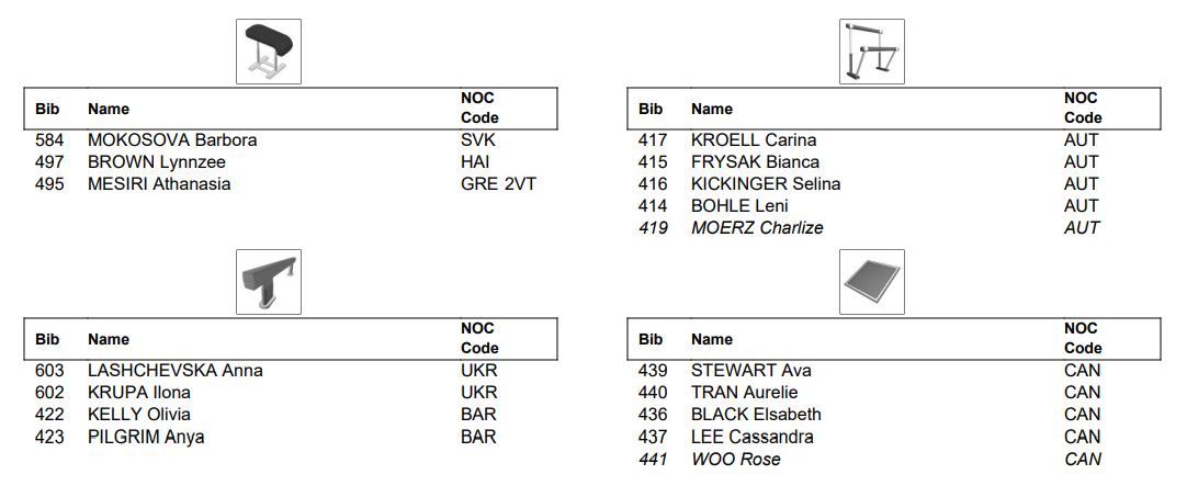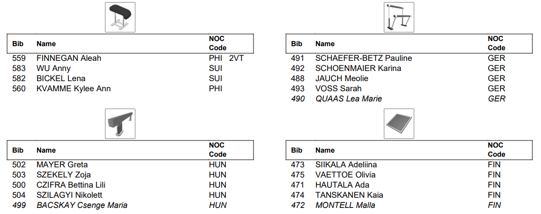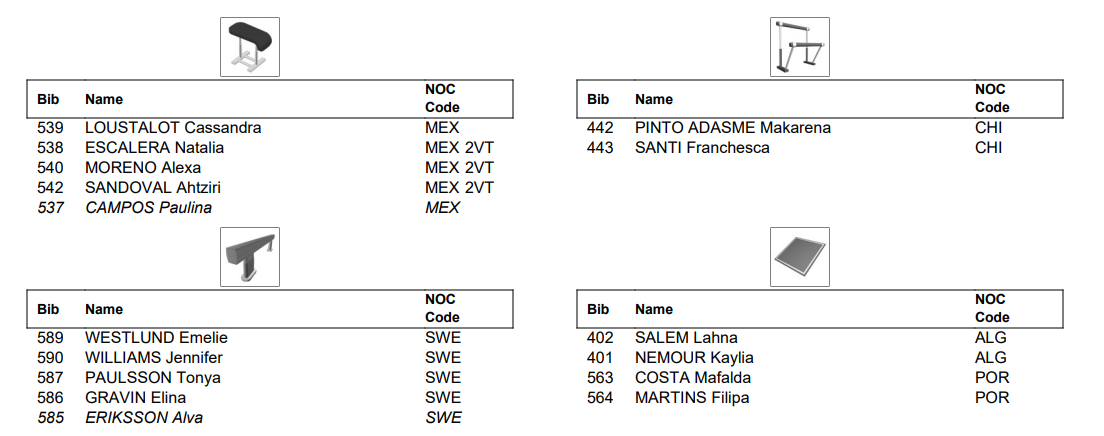 Un torneazo de USA que erró en 1 sola serie de 16 y tiene una estructura muy sólida: Biles y Jones con AA despegado, Wong como AA de colchón y 2 especialistas en UB-BB y VT-FX. Los demás equipos tuvieron algunos problemas, con GBR descartando algunas notas por caídas y Eythora Thorsdottir con caídas y temas de ejecución varios, que la dejaron al borde del AA por el momento y sin finales por aparato. Otra que hizo un torneazo fue Manila Espósito, que apuntaló al equipo italiano y lidera el AA de su país (4to en la tabla hasta el momento).