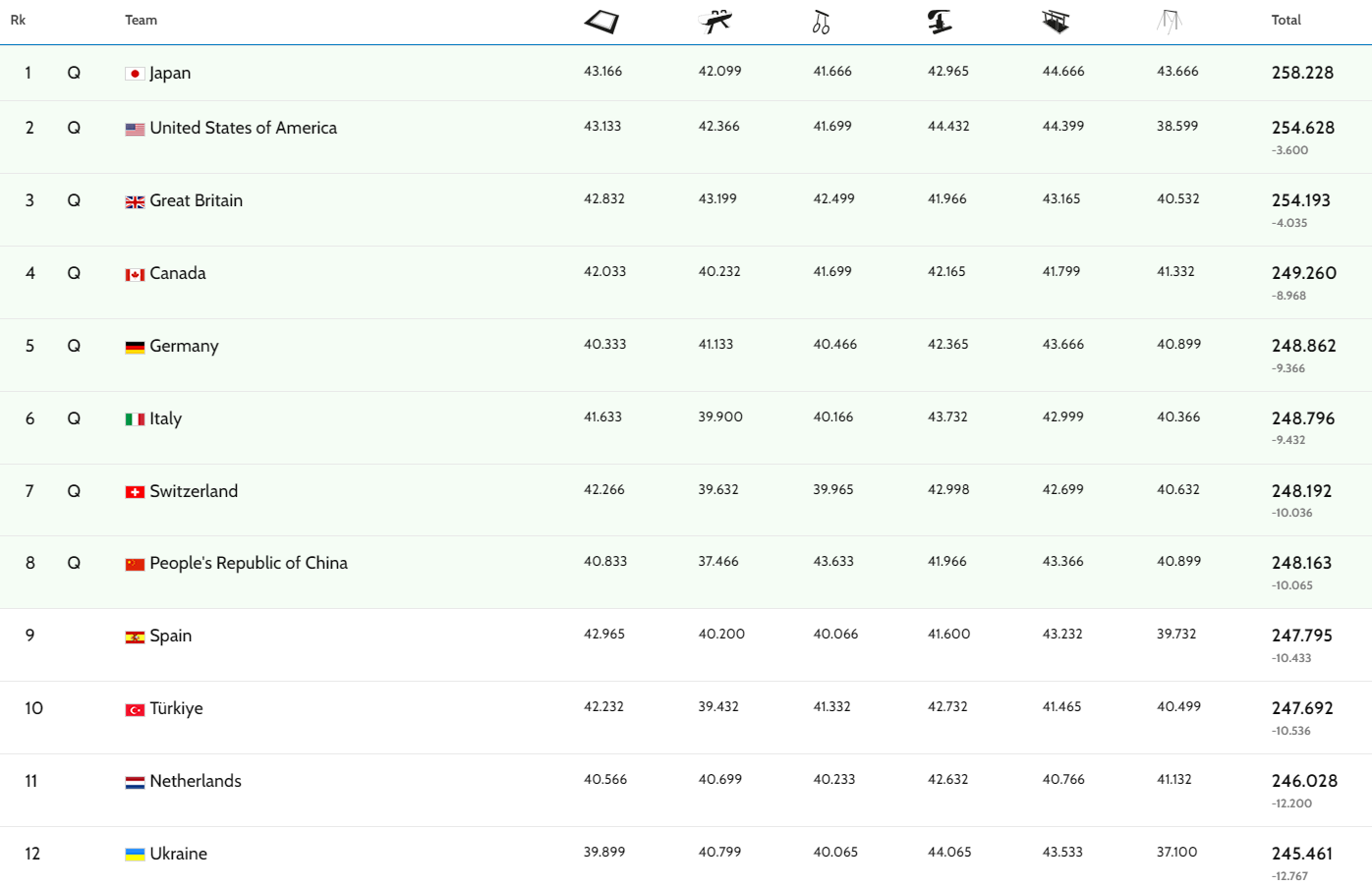 El top 9 y el top 3 2023 (Japón, China y GBR) se ganaron el ticket a París. Brasil, Corea del Sur y Bélgica ganaron una plaza AA para su país.