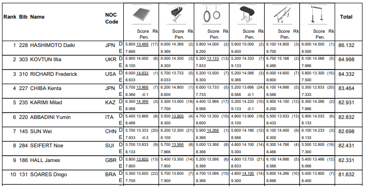 Japón se quedó también con el título AA. Hashimoto Daiki defendió su título, seguido de Ilia Kovtun (UKR) y Fred Richard.
