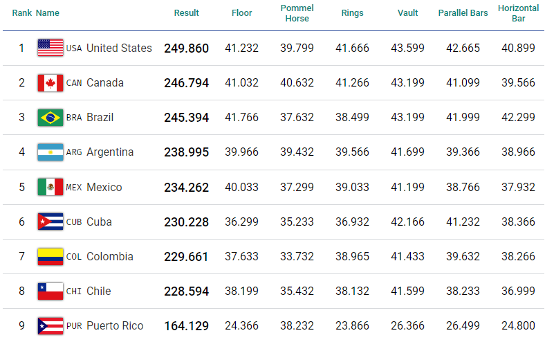 Ayer sábado fue el primer día de competencia de la gimnasia artística. La rama masculina hizo su debut en la clasificación y final por equipos, donde Estados Unidos se llevó el primer puesto, seguido de Canadá y Brasil. Argentina logró un resultado histórico con su cuarto puesto por equipos y un total de 8 clasificaciones individuales.