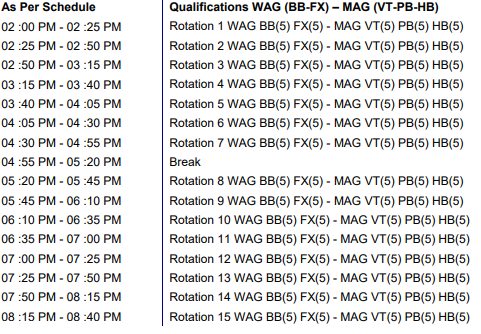 QR GAM (FX, PH, SR) y GAF (VT, UB)